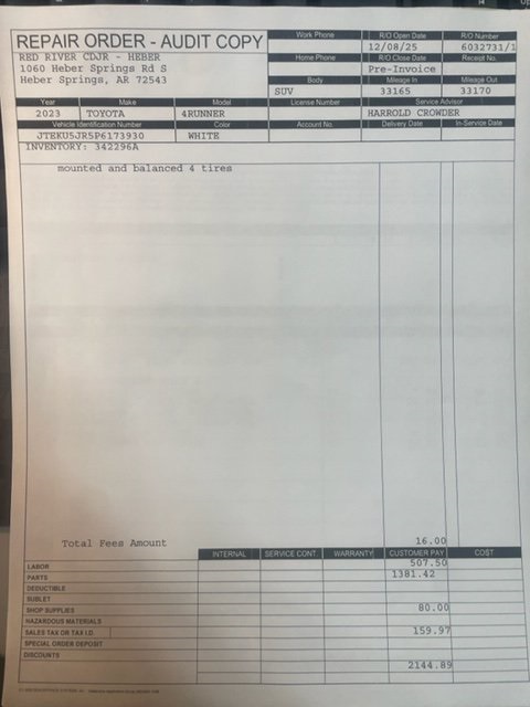 4WD, Leather.White 2023 Toyota 4Runner Limited 4WD 5-Speed with ECT 4.0L V6 DOHC 24VOdometer is 6409 miles below market average!Red River Chrysler, Jeep, RAM and Dodge is your New Used Car Truck or SUV headquarters! Serving Heber Springs, Searcy, Batesville, Conway, Cabot and Mountain View, Arkansas! We will ship anywhere in the US! We offer competitive financing and have certified technicians to help with your maintenance needs. Call us @ 877-652-4076 or visit us at redriverdodge.com.